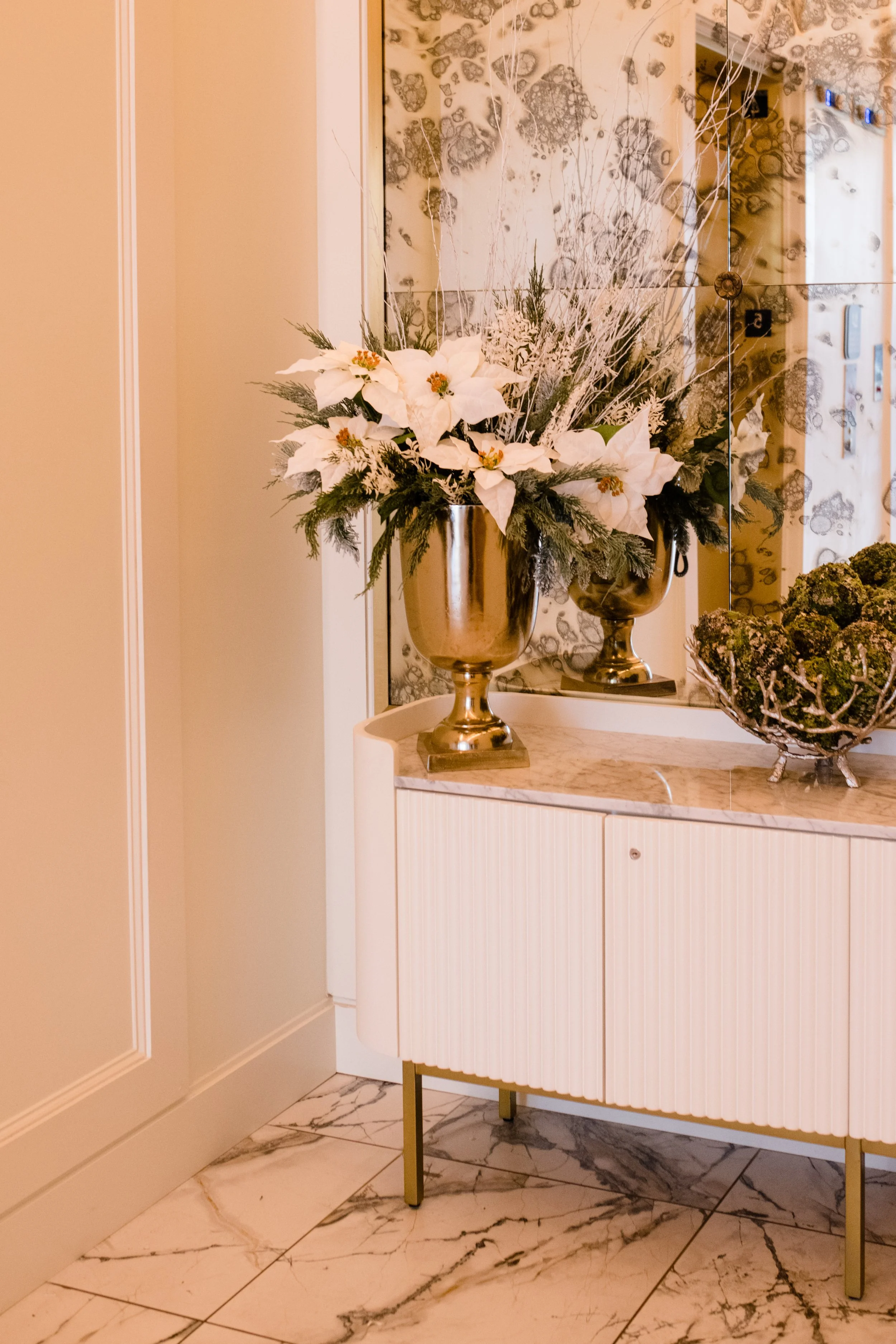 The highlight of the space was a dramatic hallway lined with cascading garland arches, creating a sense of wonder and anticipation as guests moved through the space. Every detail, from the shimmering ornaments to the softly glowing lights, was designed to evoke the feeling of being invited into Mary Louise’s home for an opulent holiday gathering. The installation struck the perfect balance between elegance and whimsy, immersing visitors in the fictional narrative while making the holiday season feel utterly magical.